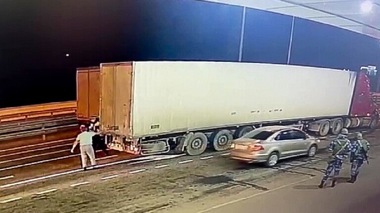 وذكر الأمن الروسي في بيان له يوم الأربعاء أنه تم تمويه العبوة الناسفة على شكل لفائف باستخدام فيلم بولي إثيليي على 22 منصة نقالة يبلغ وزنها الإجمالي 22770 كغم، ونقلت هذه الشحنة عبر أراضي عدة دول قبل أن يتم تفجيرها وهي على متن شاحنة تمر بجسر القرم فجر السبت الماضي.