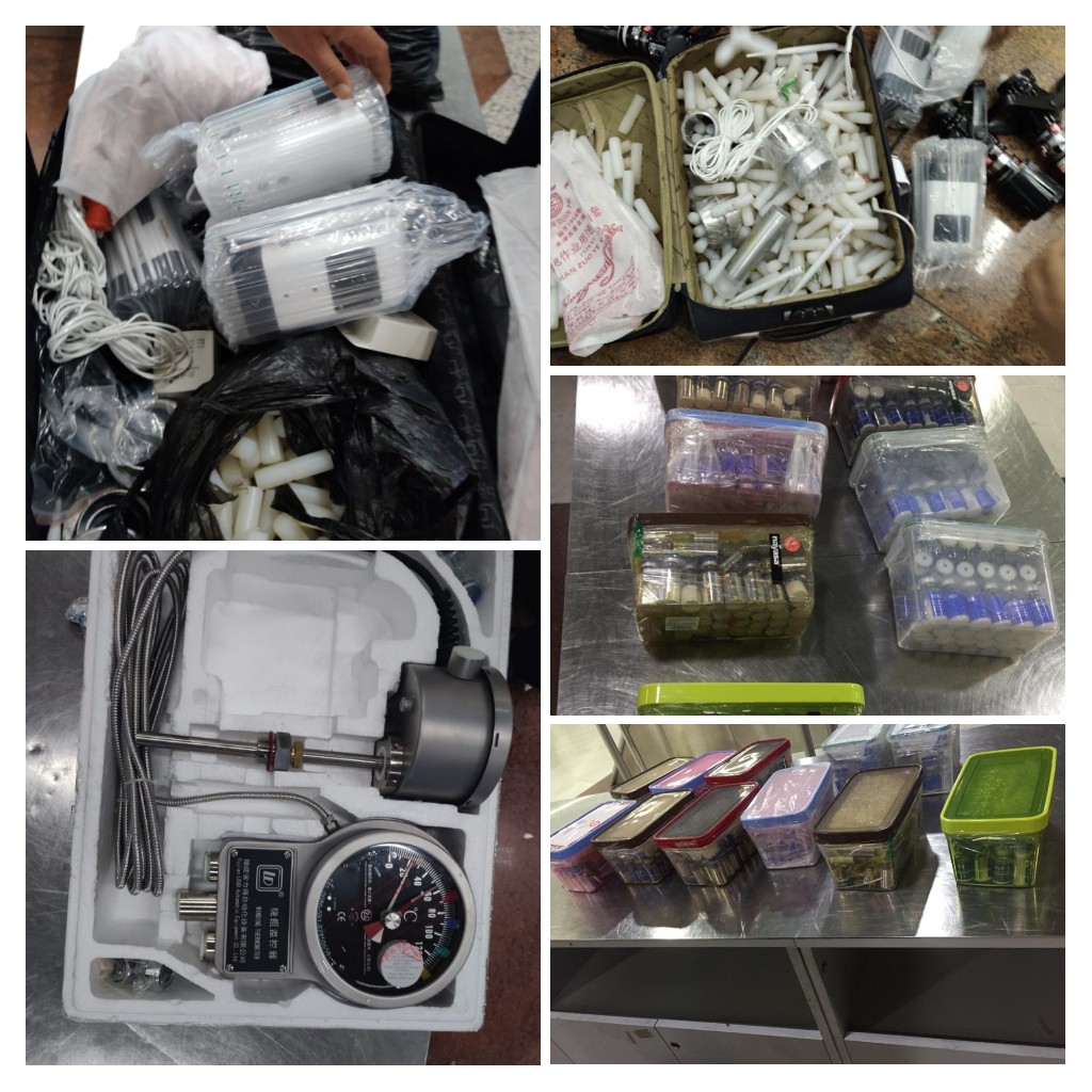 وذكرت الهيئة في بيان ان "السلطات الجمركية في جمرك مطار البصرة ضبطت حقيبة سفر تحوي كمية من امبولات مواد كيميائية وحقيبة تحوي (٨) كاميرات تصوير مع 4 أجهزة قياس الحرارة مخالفة بدون موافقات رسمية صحبة مسافر اجنبي يروم ادخالها للعراق".