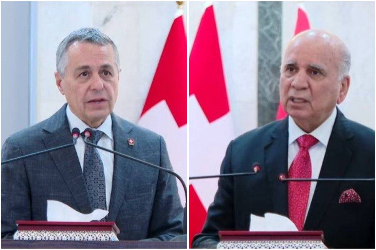 بحث نائب رئيس مجلس الوزراء وزير الخارجية، فؤاد حسين، اليوم الخميس، مع وزير الخارجية السويسري إغنازيو كاسيس، سبل تعزيز التعاون الثنائي بين البلدين، ومناقشة عدد من الملفات ذات الاهتمام المشترك، من بينها إدارة المياه والطاقة والهجرة، إضافة إلى تسهيل منح سمات الدخول للعراقيين.