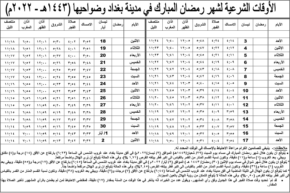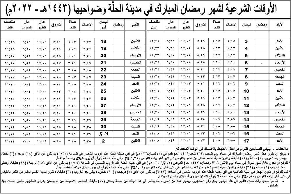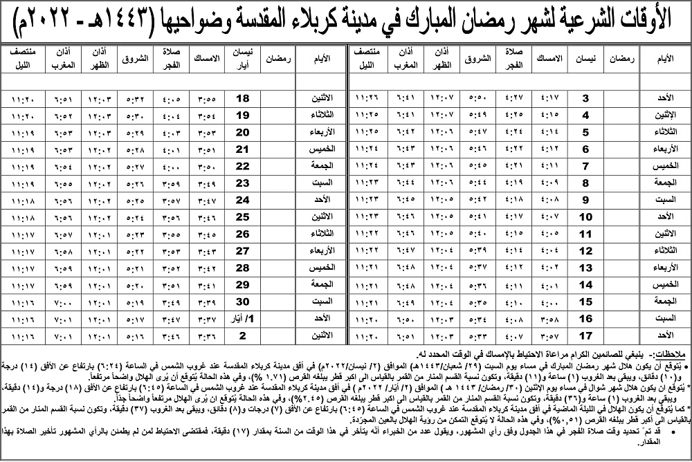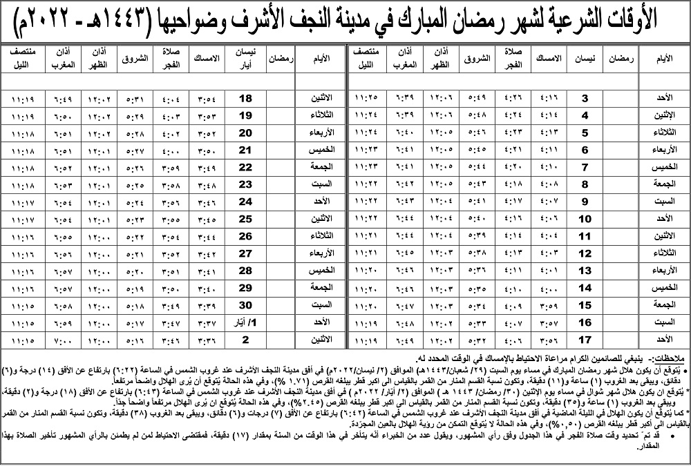 مكتب_السيستاني_ينشر_إمساكيات_شهر_رمضان_لكل_المحافظات_(صور)