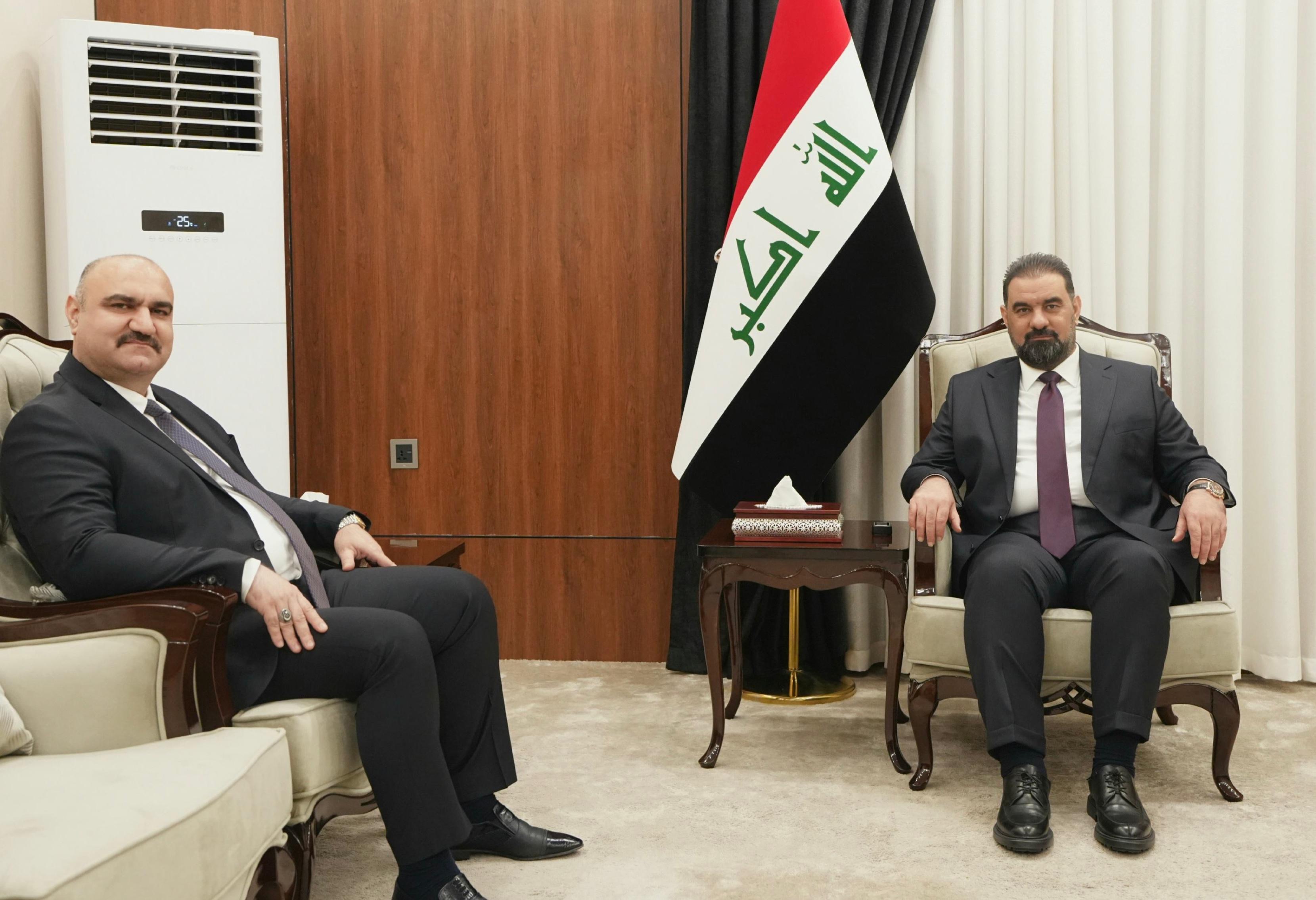 بحث رئيس مجلس النواب، هيبت الحلبوسي و رئيس الجبهة التركمانية، محمد سمعان آغا، اليوم الخميس، تعزيز الشراكة الوطنية بين مختلف المكونات.