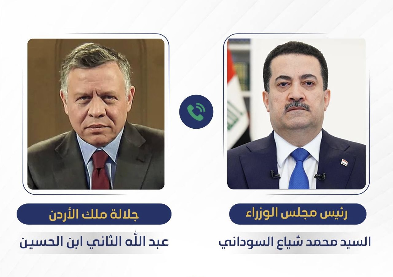بحث رئيس مجلس الوزراء محمد شياع السوداني مع العاهل الأردني الملك عبد الله الثاني بن الحسين، في اتصال هاتفي، اليوم الخميس، تطورات الاحداث في المنطقة.